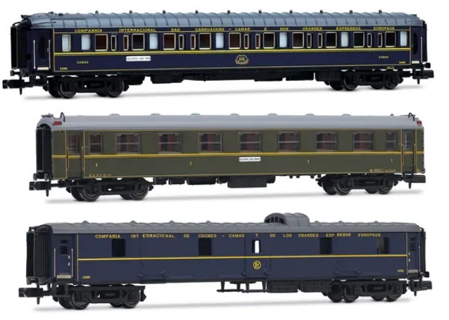 (N scale) HN4486 CIWL, 3-unit pack Sud-Expreso, set 1/2 (DD3 + AA 5000 green with bellows + WL), ep. III-IV