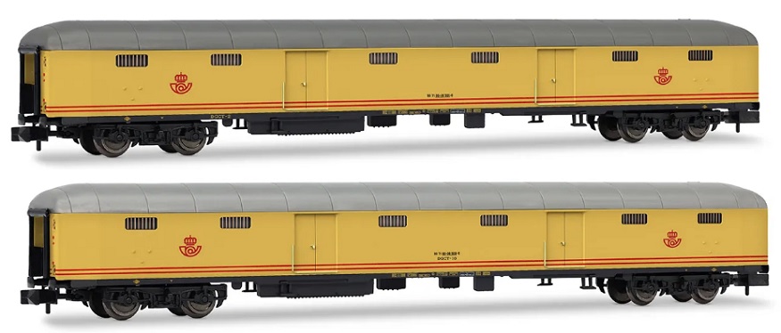 (N scale) HN4506 RENFE, 2-unit set postal van, DGCT-2 + DGCT-10, yellow livery, period IV