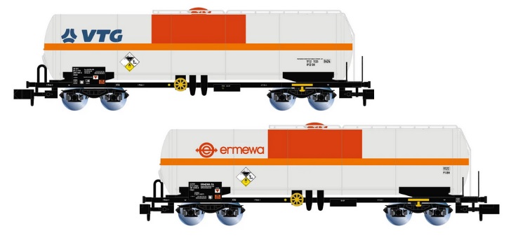 (N scale) HN6634 SNCF, 2-unit pack tank wagons for chlorine, VTG + ermewa, beige/orange/red livery, ep. VI