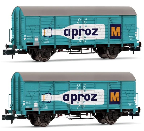 (N scale) HN6683 SBB, 2-unit pack 2-axle closed wagon type Gs APROZ, ep. III