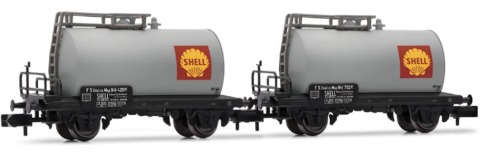 (N scale) HN6701 FS, 2-unit pack 2-axle tank wagons, Shell silver livery, ep. III-IV