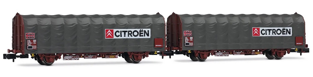 (N scale) HN6712 SNCF, 2-unit pack 2-axle tarpaulin wagon, Kils K70 type, Citroën , ep. IV-V