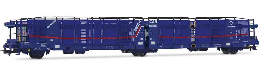 (HO scale) HJ6316 TRANSFESA/Hispanauto, 3-axle car transporter Laeks Mega Car Carrier, blue with new logo, ep. VI