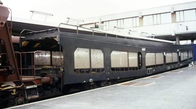 (HO scale) HJ4209 SNCF, DD DEV 66 car transporter, protective lateral grills, green w. white Encadré logo, ep. IV-V