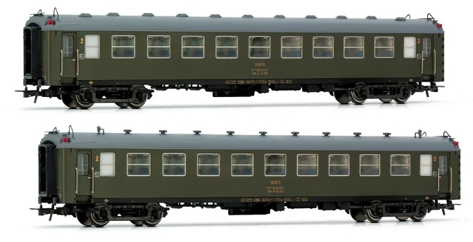 (HO scale) HE4038 RENFE, 2-unit set 5000 coaches, BB4 2nd class, with old bellows, olive green livery, ep. IV