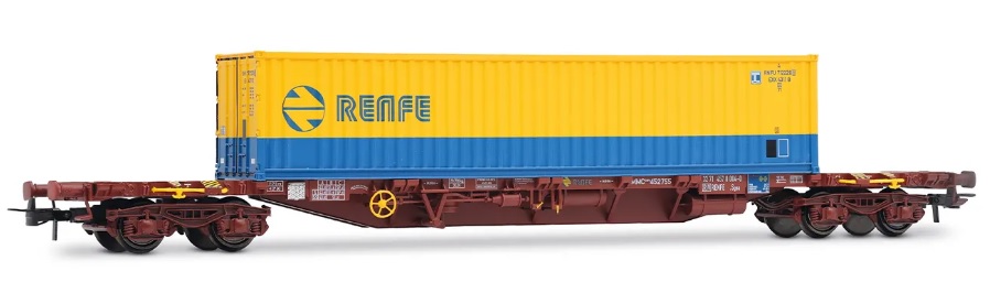 (HO scale) HE6065 RENFE, 4-axle container wagon MMC3 , loaded with 40' container RENFE, oxid red livery, ep. IV