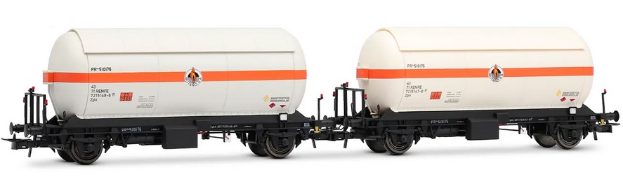 ELECTROTREN HE6072 RENFE, 2-unit pack PR type gas tank wagons, Butano S.A. orange-white, ep. IV