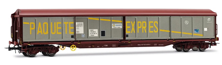 ELECTROTREN HE6084 RENFE, 4-axle DDJP wagon, Paquete-Expres silver-oxid red livery, with swapped doors, ep. IV