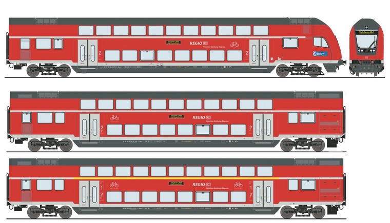 (HO scale) 6210144 3 piece set: Double-deck coaches, DB AG , Ep. 6