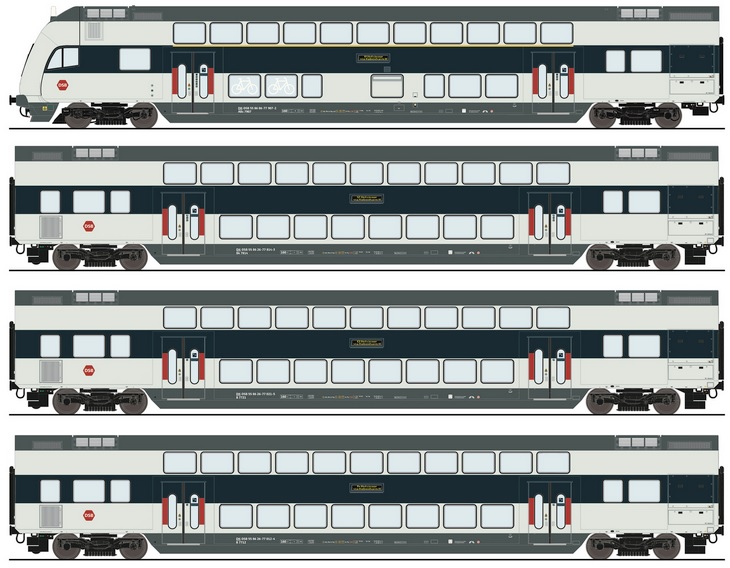 (HO scale) 6210147 4 piece set: Double-deck coaches, DSB , Ep. 6
