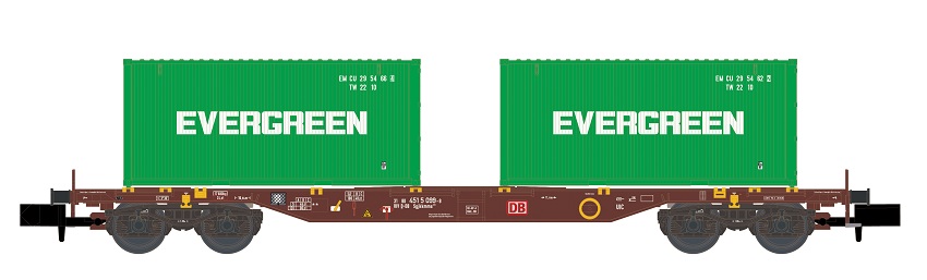 (N scale) H23204 Containerwagen Sgjkkmms 699 DB, Ep.IV, Evergreen