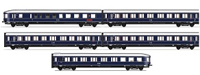 hr4389 copy RIVAROSSI HR4389 DB, 5-unit pack passanger train Blauer Enzian, blue livery, ep. III