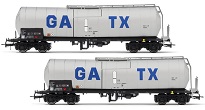 hr6667 copy RIVAROSSI HR6667 GATX, 2-unit pack 4-axle isolated tank wagons, light grey livery with big GATX logo, ep. VI