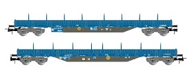 hr6671 copy RIVAROSSI HR6671 Press, 2-unit pack 4-axle stake wagons, Res type, blue livery, unloaded, ep.VI