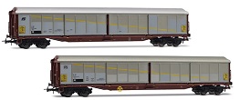 hr6673 copy RIVAROSSI HR6673 FS, 2-unit pack Habils closed wagons, silver/brown livery, inclined + rounded FS logo, ep. V