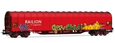 hr6680 copy RIVAROSSI HR6680 DB AG, 4-axle tarpaulin wagon Rils type, red livery RAILION DB LOGISTICS with graffiti, ep. V-VI
