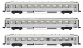 hn4321 copy ARNOLD HN4321 SNCF, 3-unit pack train rapide, DEV Inox coaches, 2 x A9 + 1 x A5 bar coach, period III