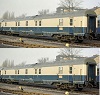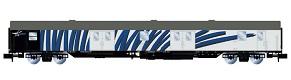 hn4426 copy ARNOLD HN4426 Lokomotion 4-axle ex postal van Zebrawagen grey livery with blue stripes ep VI.